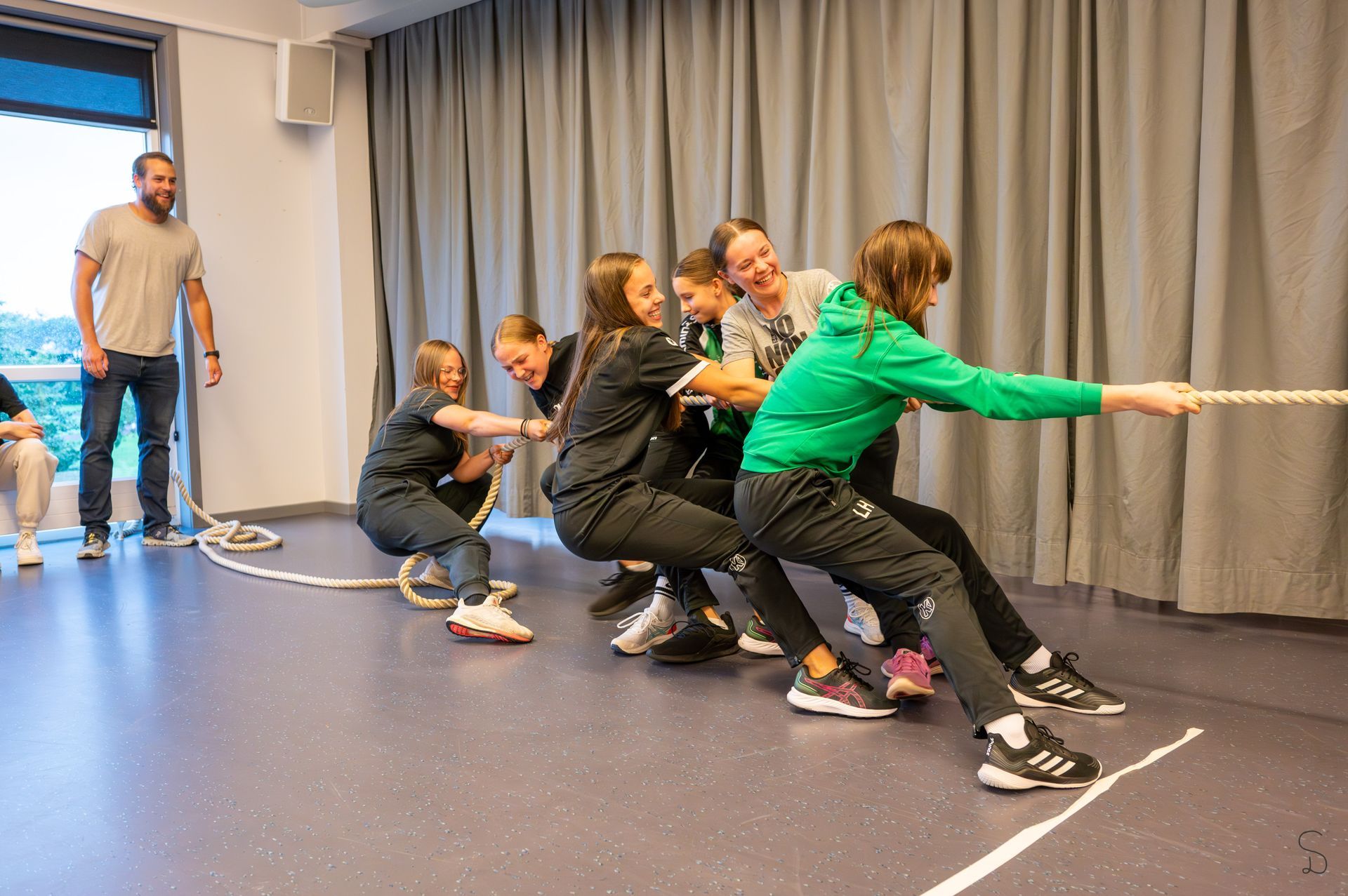 Angekommen in Skaerbaek erwartete uns diese Woche traumhaftes Sommerwetter. Die Mädels starteten direkt abends mit den ersten Trainingseinheiten. Dieses Jahr hatten wir nur 1 Halle, diese aber den kompletten Tag zur Verfügung, was die Einteilung für die Trainer wesentlich einfacher machte. Aufgrund des tollen Wetters konnten die Athletikeinheiten diesmal draußen stattfinden an den dort aufgebauten Stationen, auch die Betreuer*innen sollen sich dort regelmäßig ausgetobt haben.