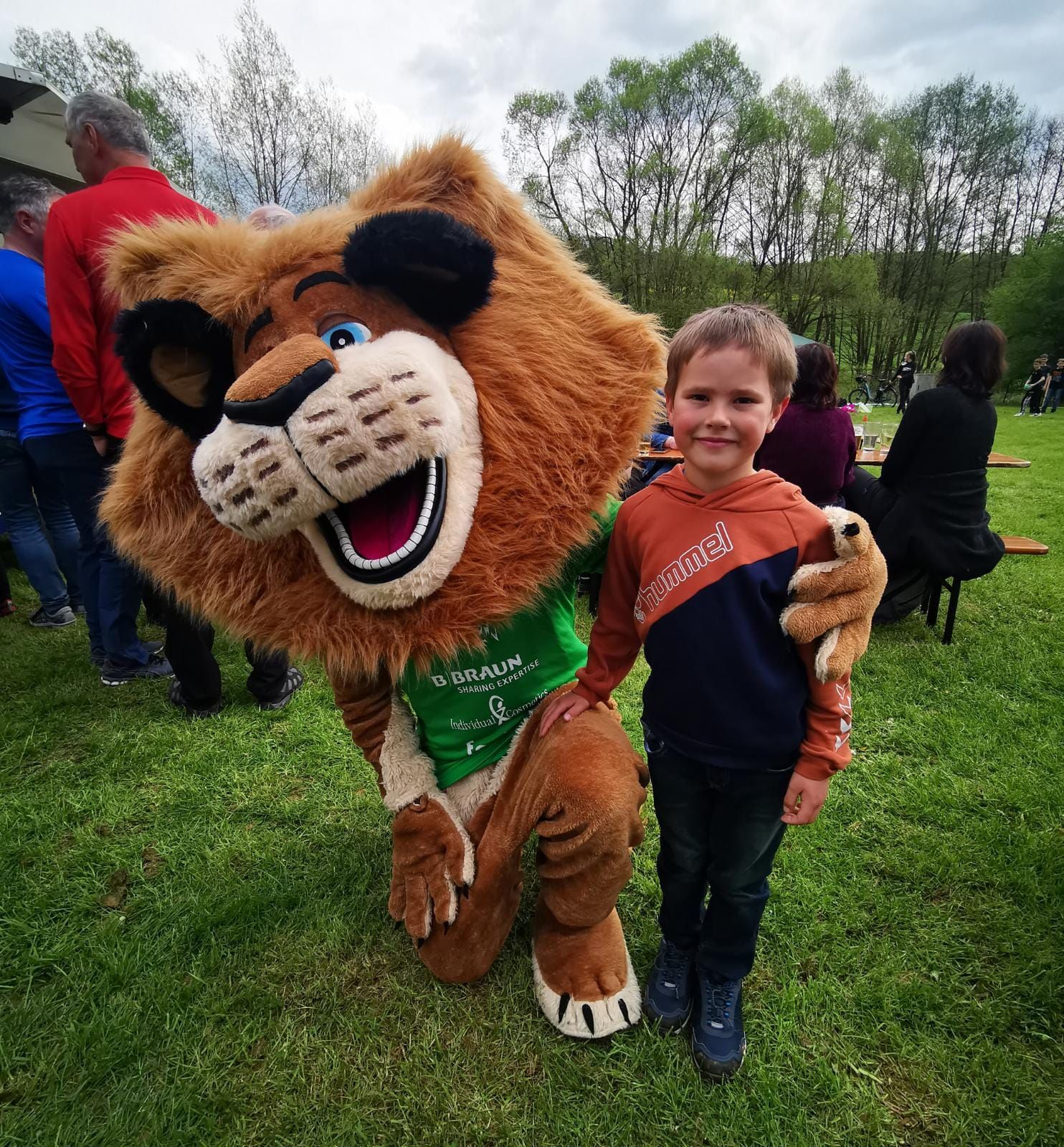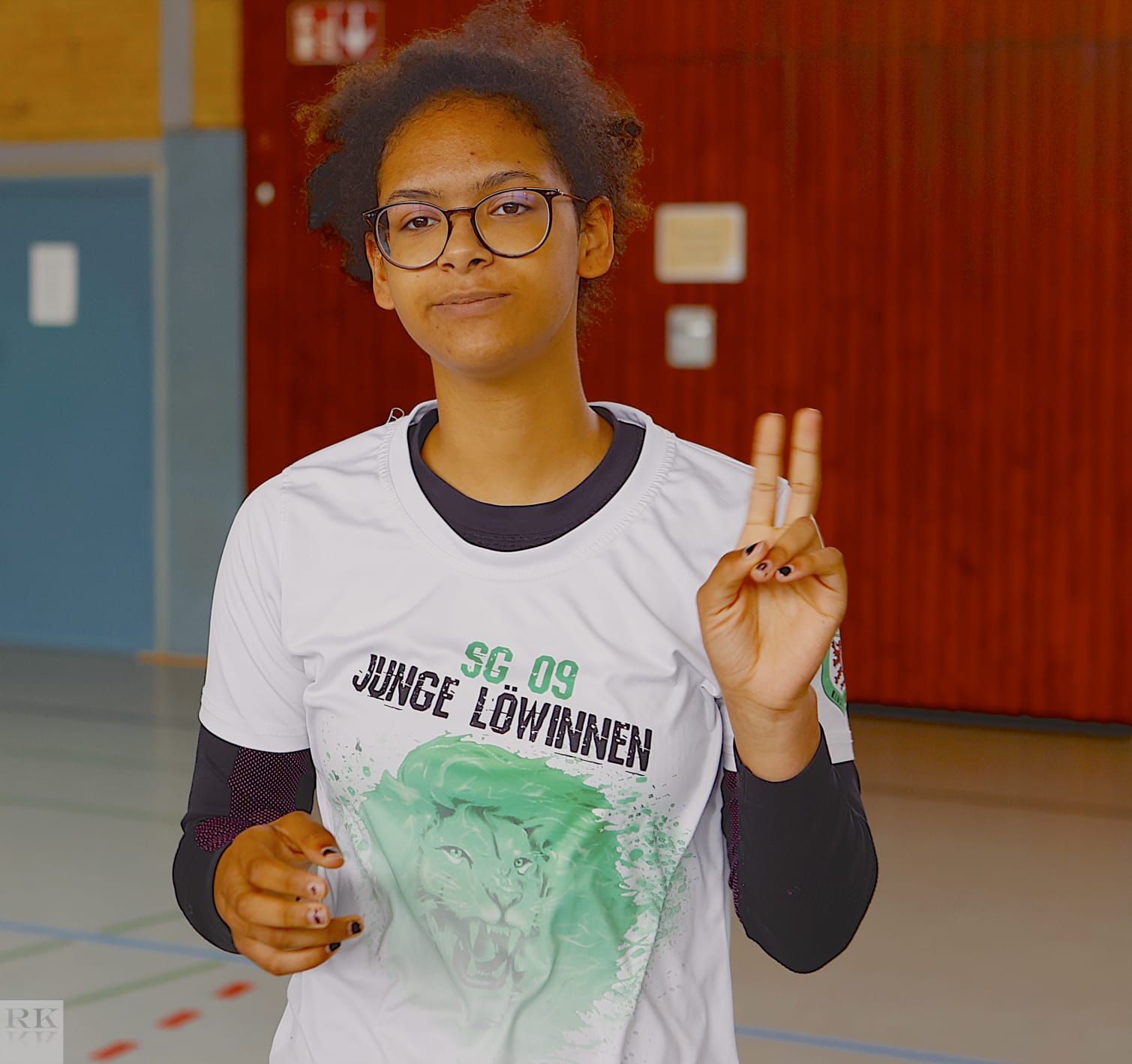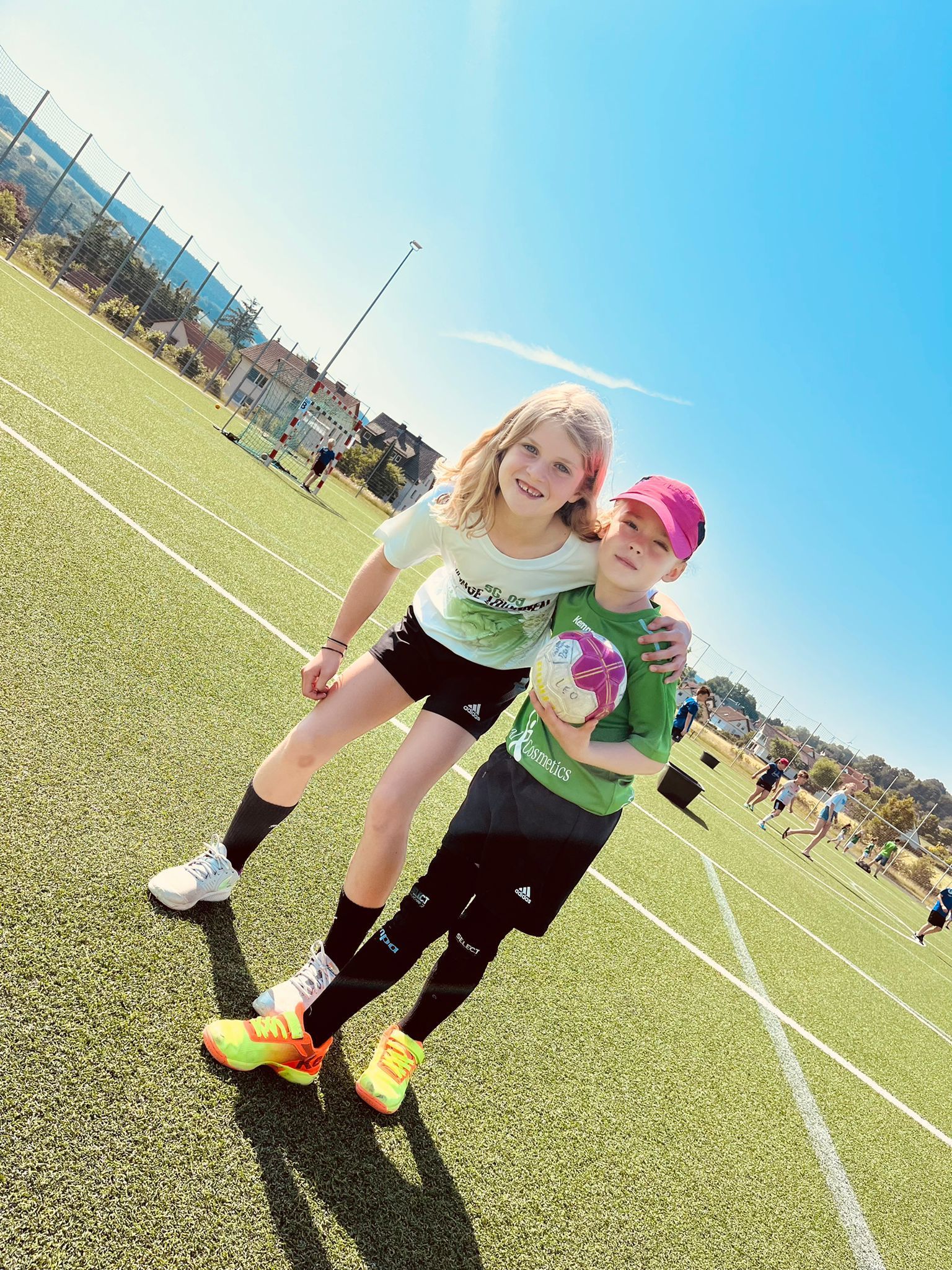 Mathis und Daniel sind im Technikteam der Löwinnen, Daniel hat dann noch die Doppelrolle des Schiedsrichters und Lilith trägt das grüne Trikot bei der E-Jugend.