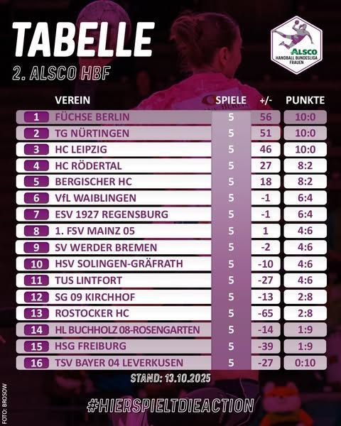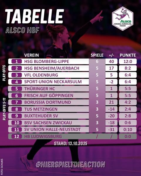 In der Alsco HBF schreitet die HSG Blomberg-Lippe weiter ohne Verlustpunkt voran. Durch den Sieg im Nordderby erobert Oldenburg Platz 3, während der THC sich auf Platz 5 nach vorne schiebt.