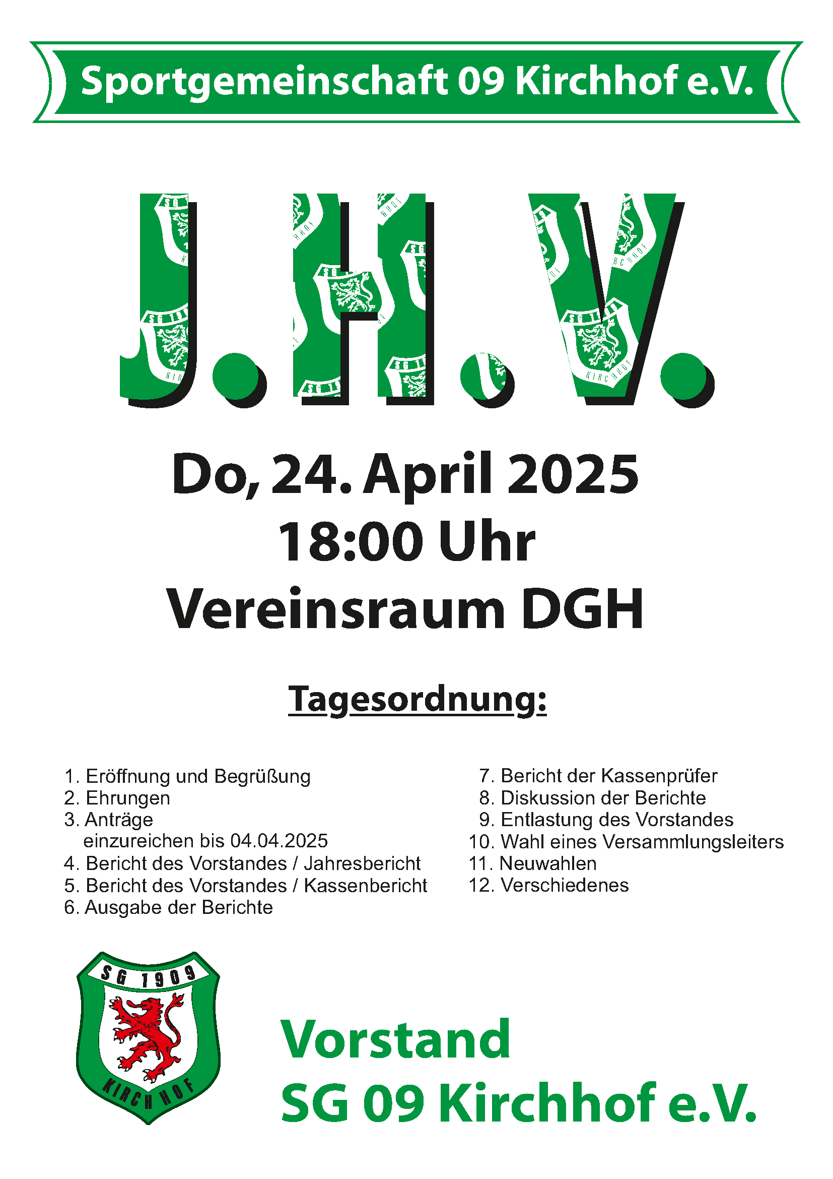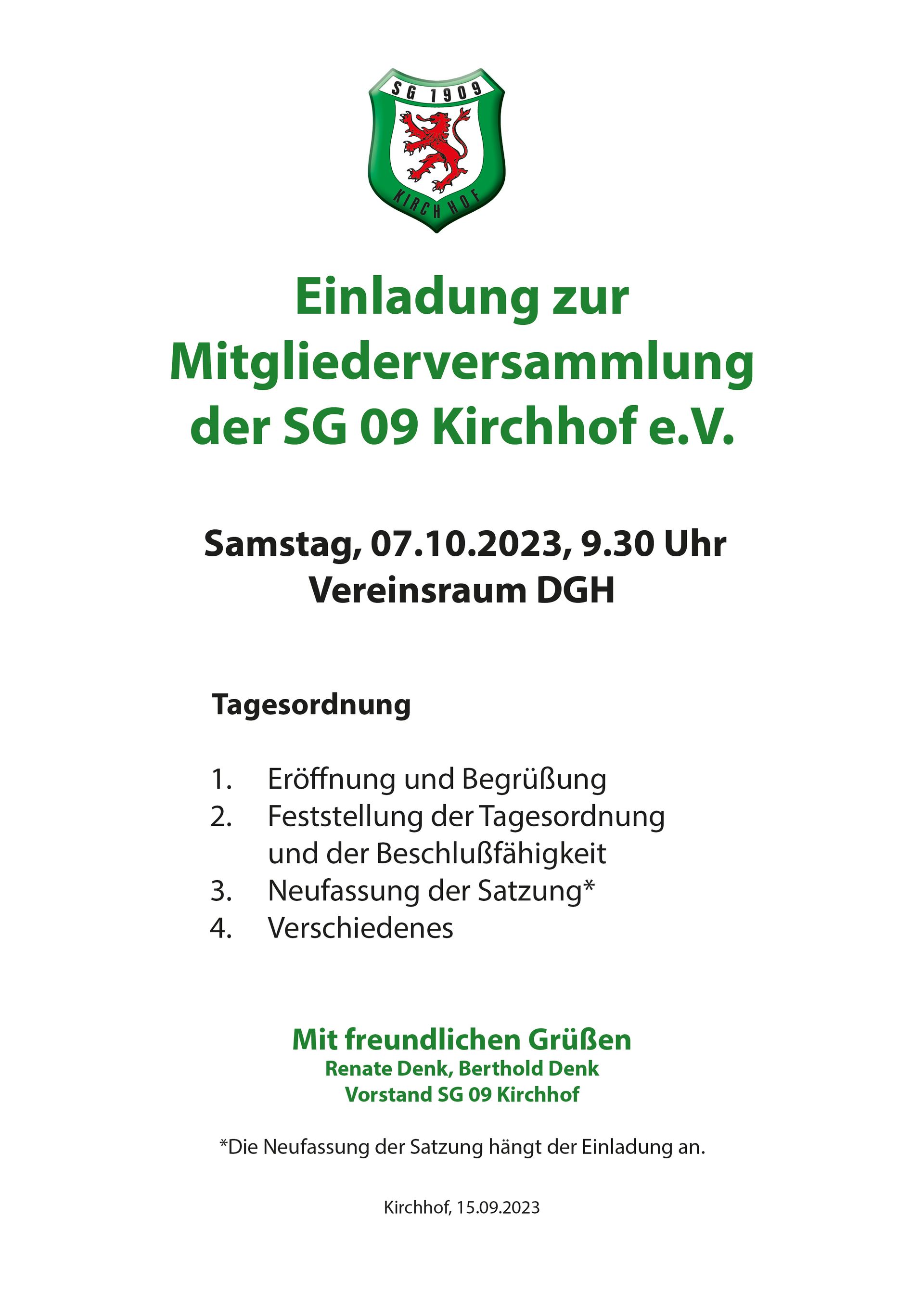 Wir warten auf Dich. Deine SG 09 Kirchhof