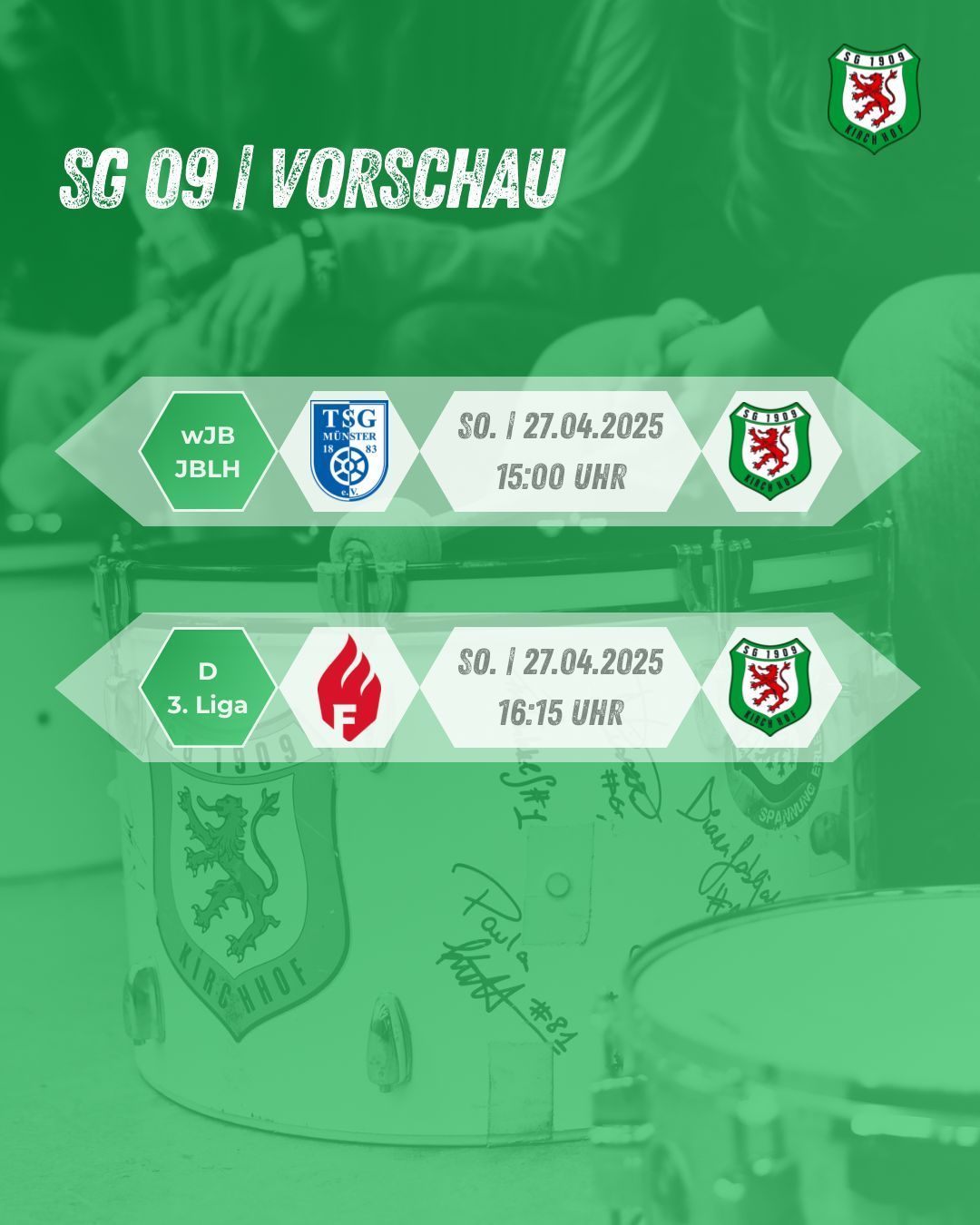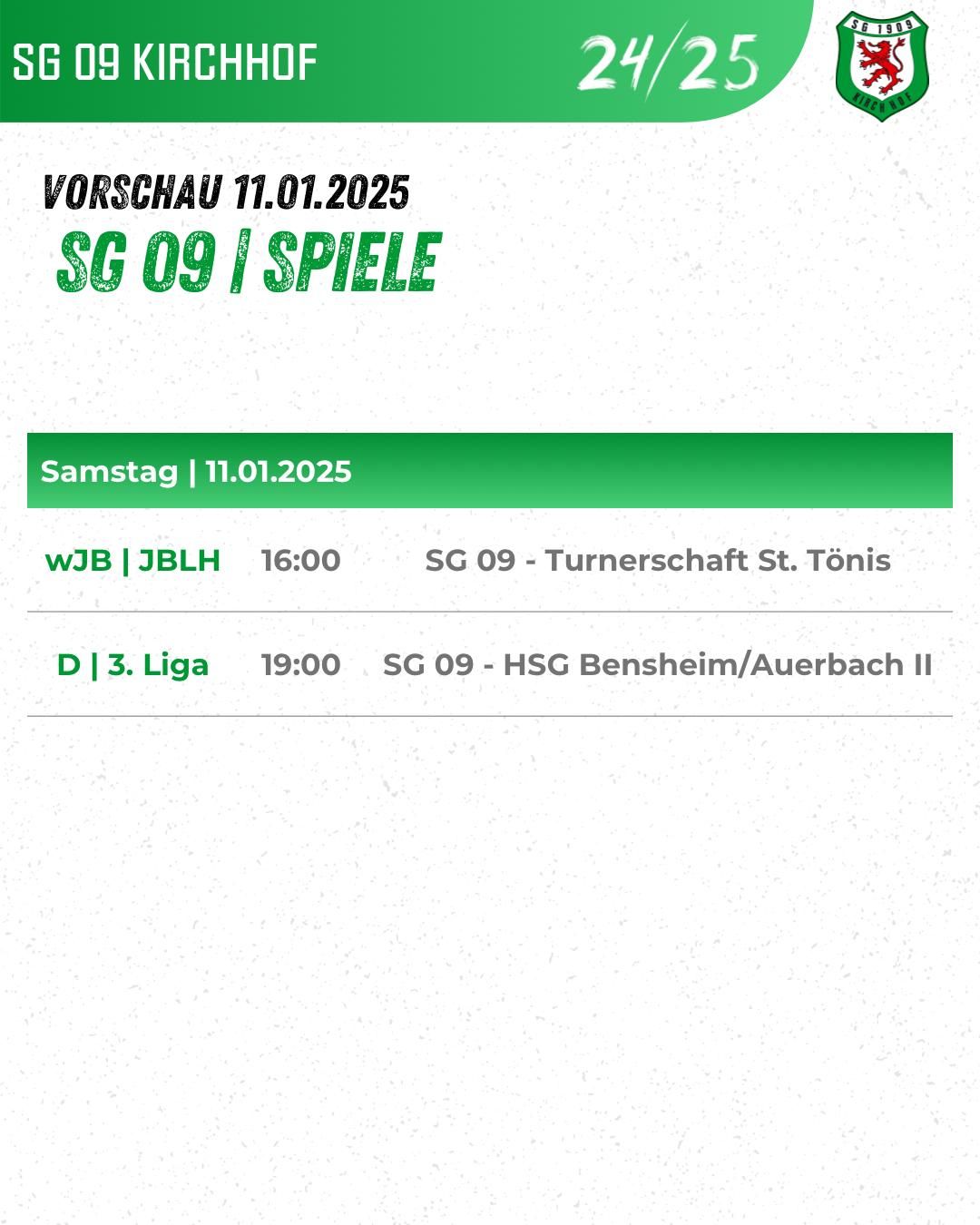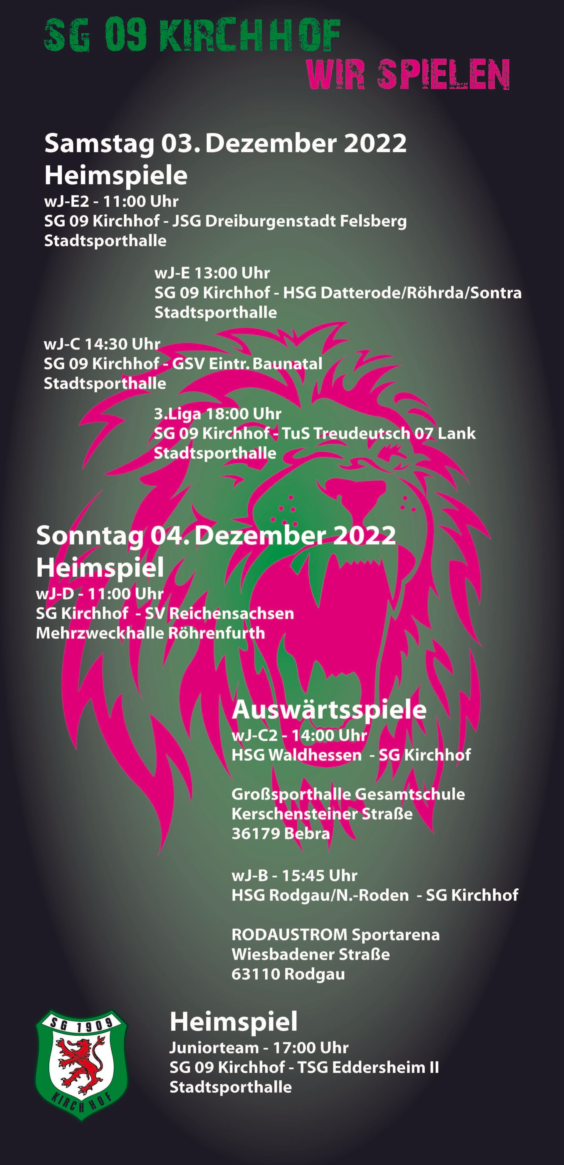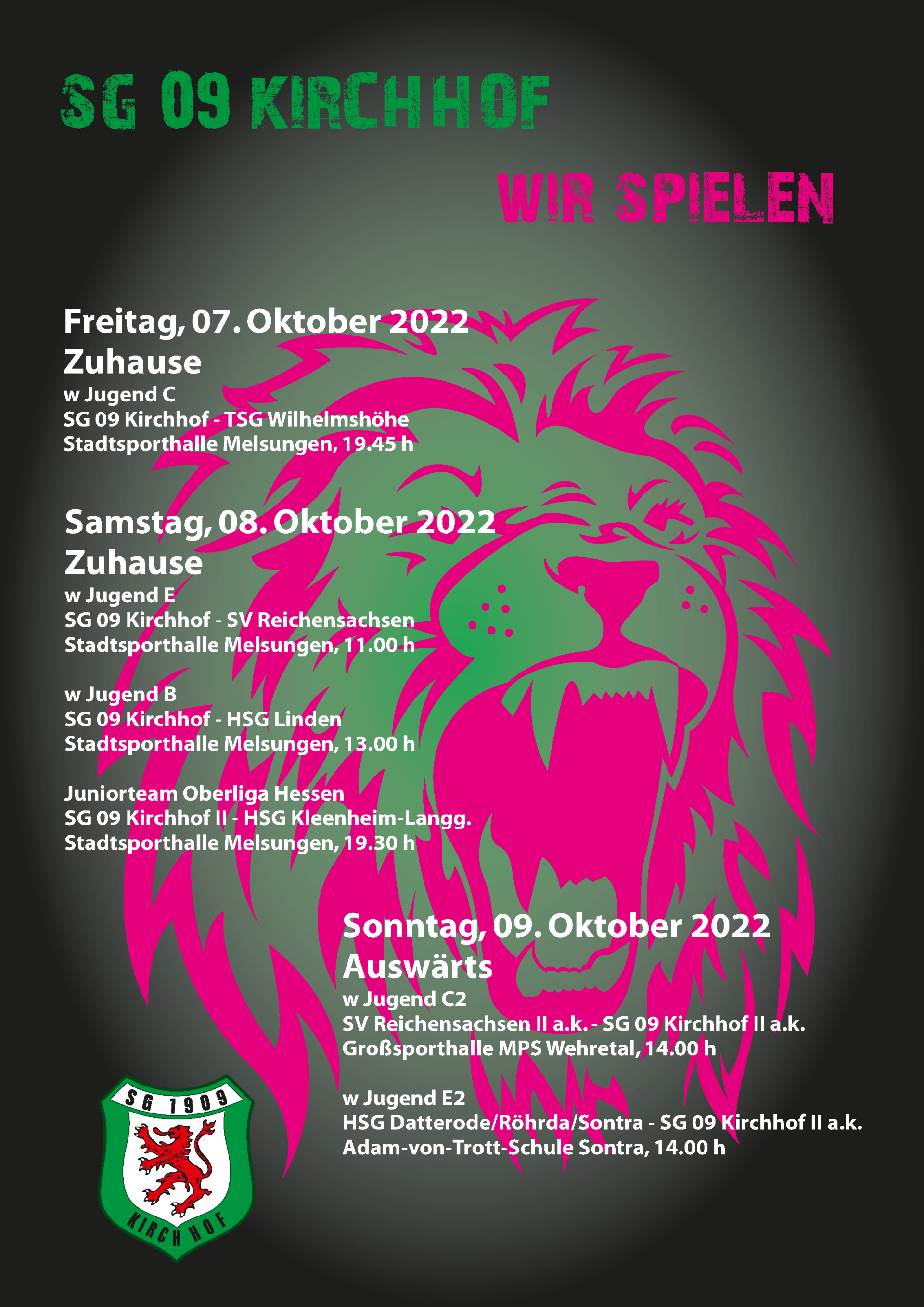 Wir wünschen euch einen schönen Handballabend und weiterhin ein gutes Zusammenspiel mit der SG 09 Kirchhof auf und neben dem Spielfeld.