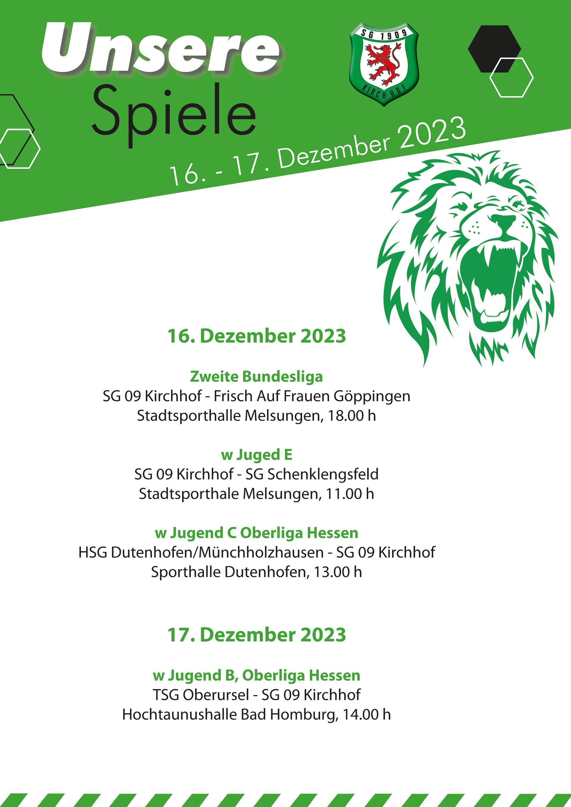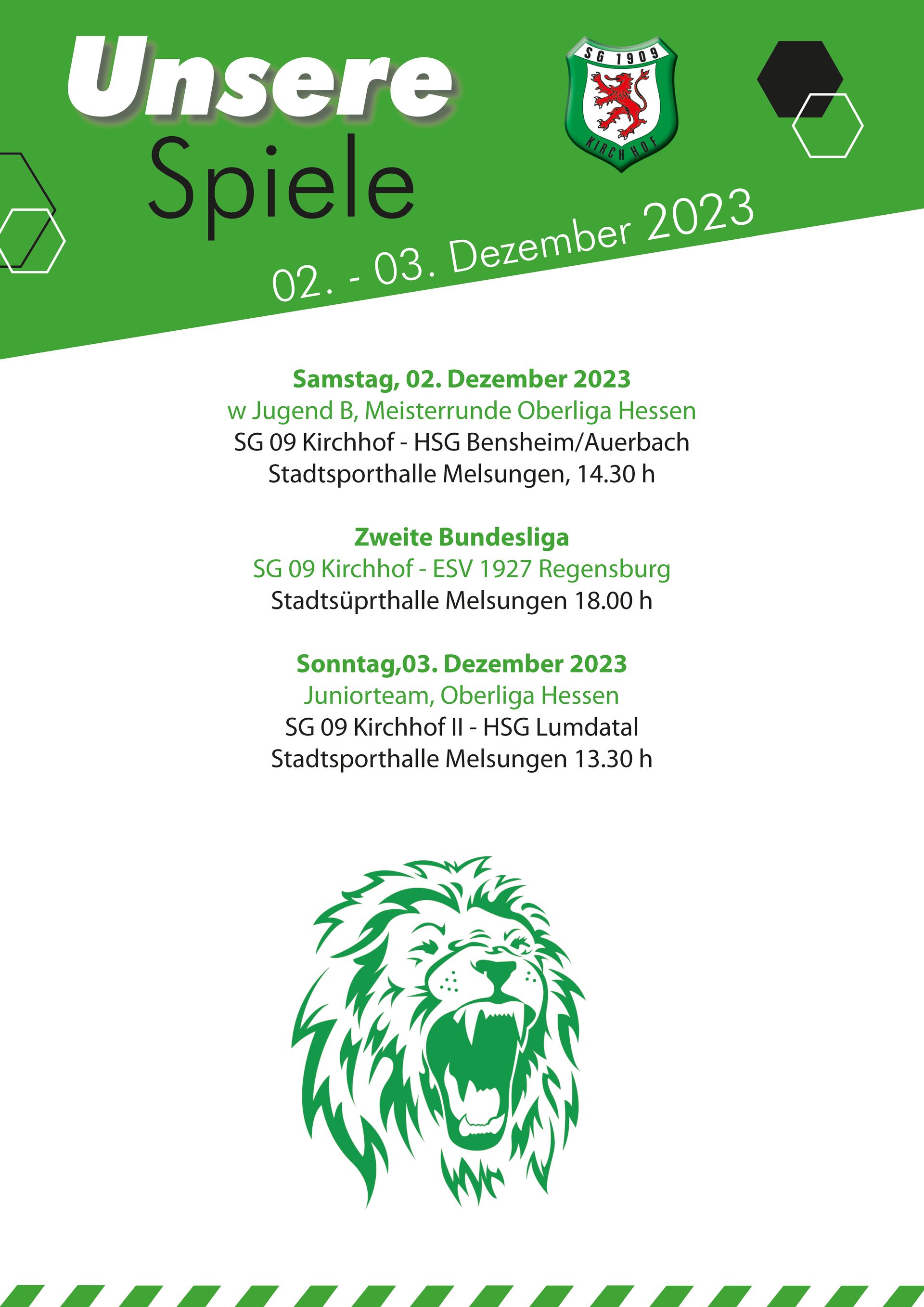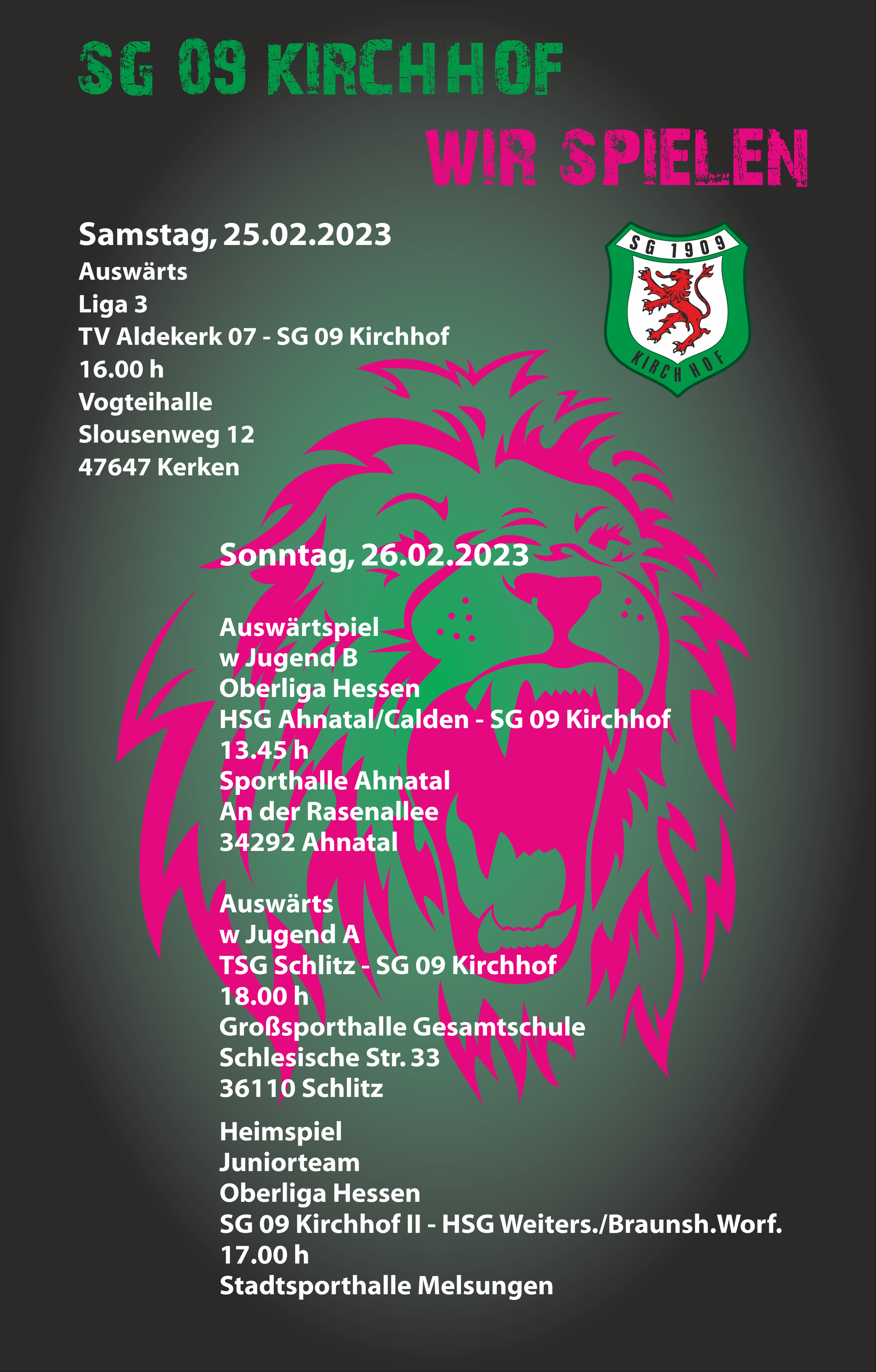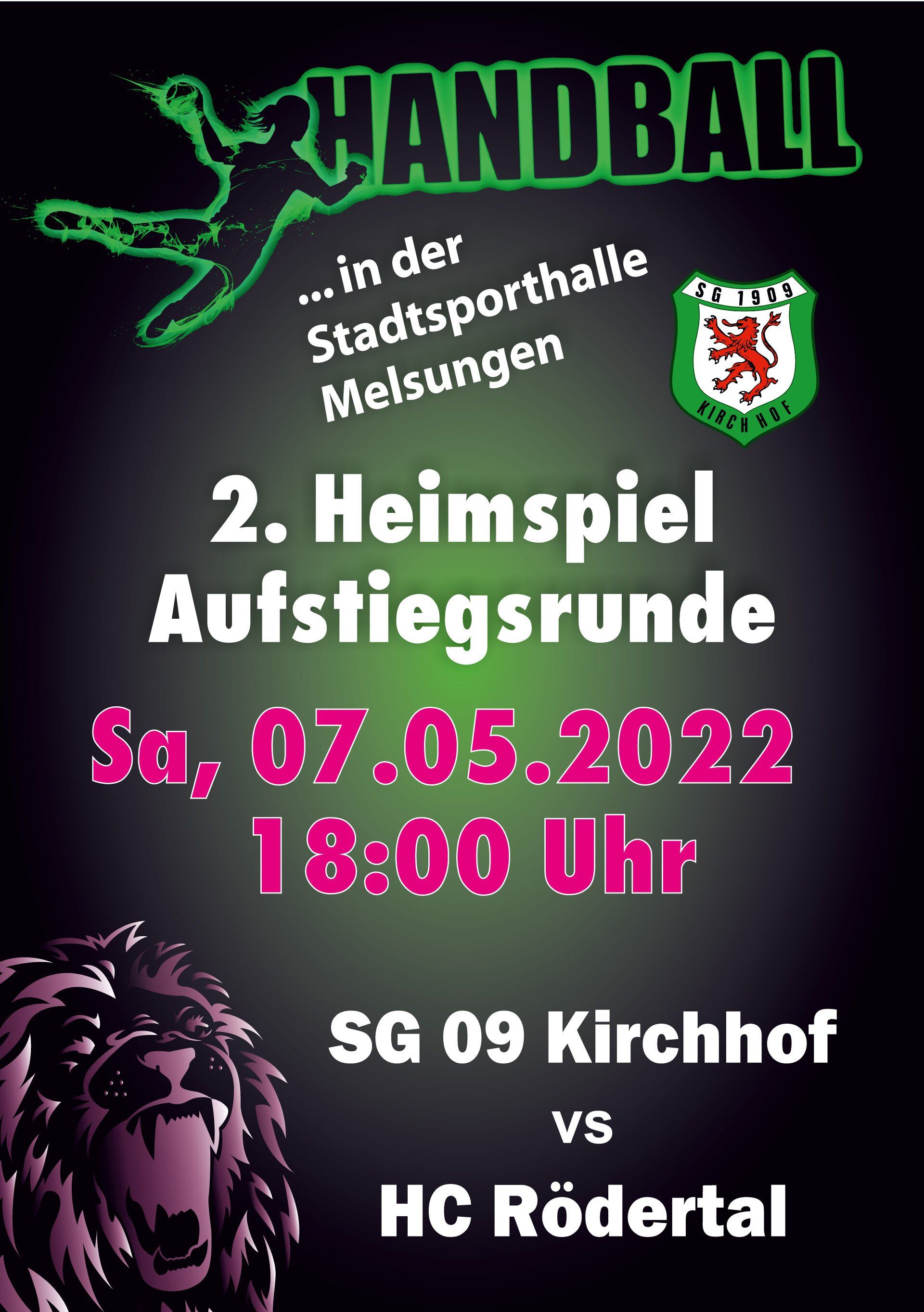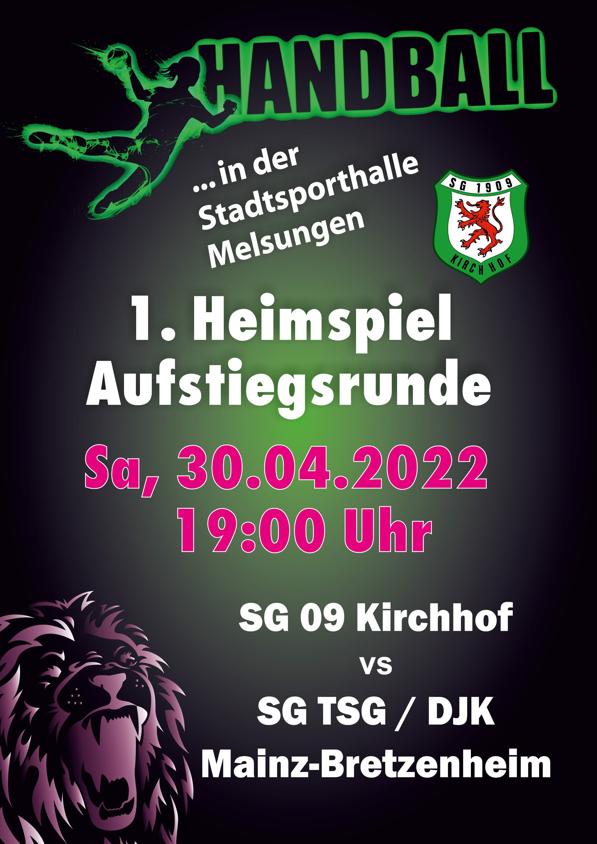 Wir wünschen euch einen schönen Handballabend und weiterhin ein gutes Zusammenspiel mit der SG 09 Kirchhof auf und neben dem Spielfeld.
