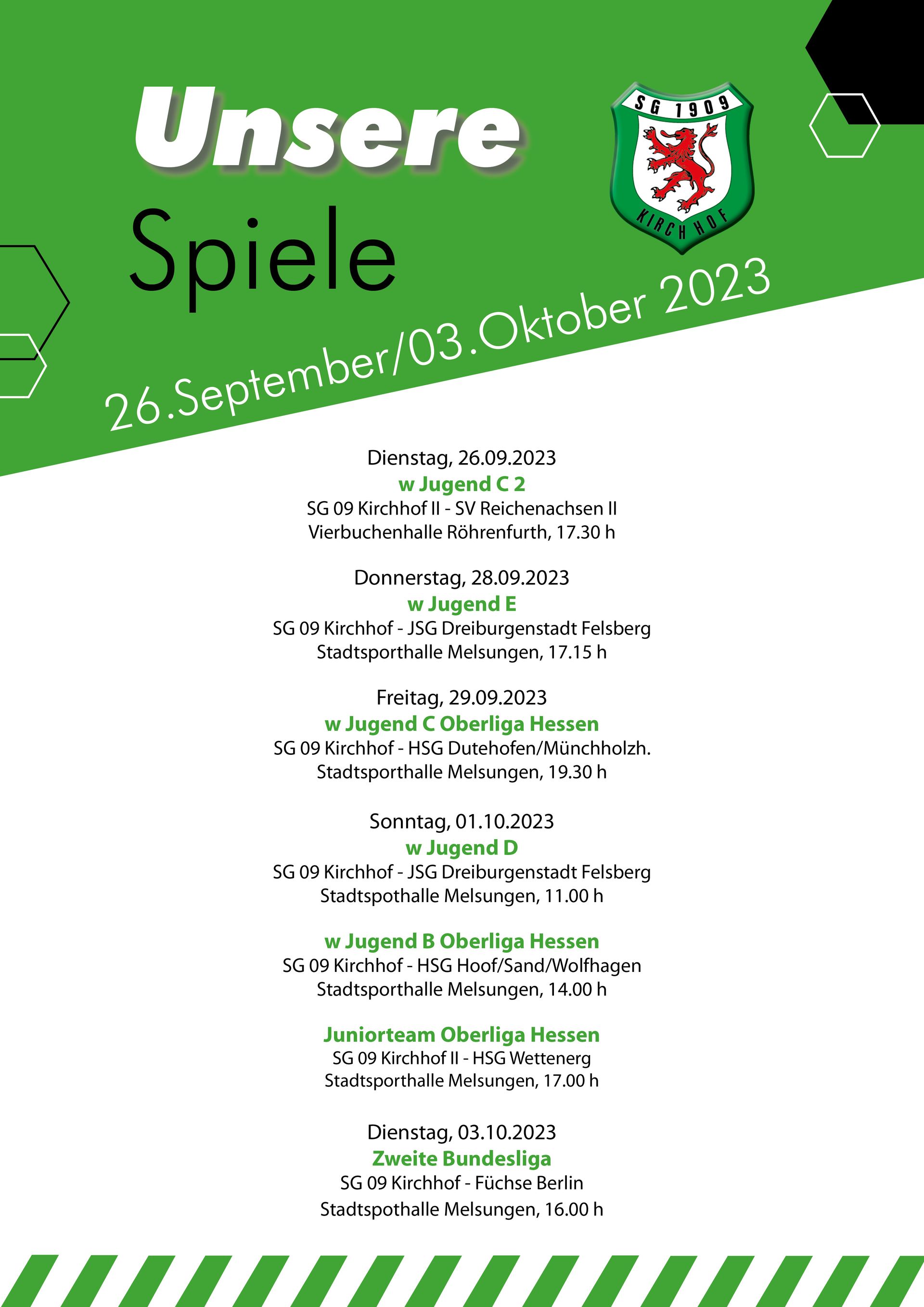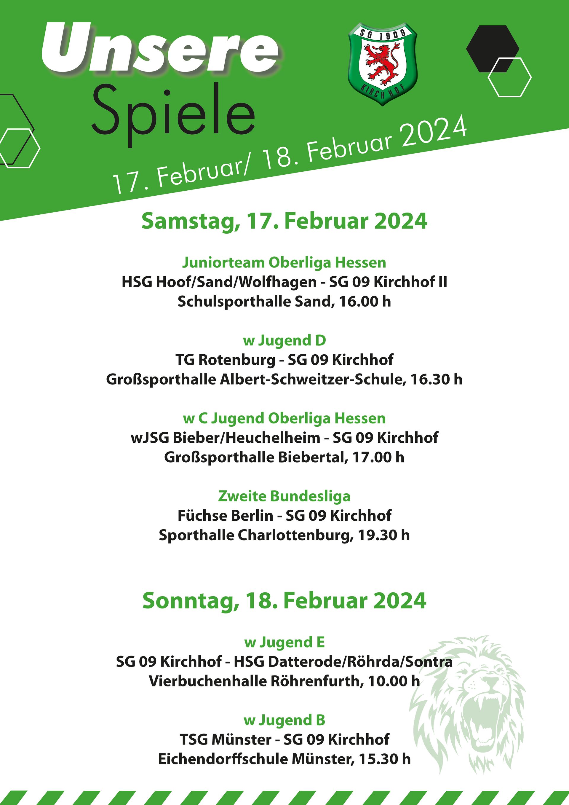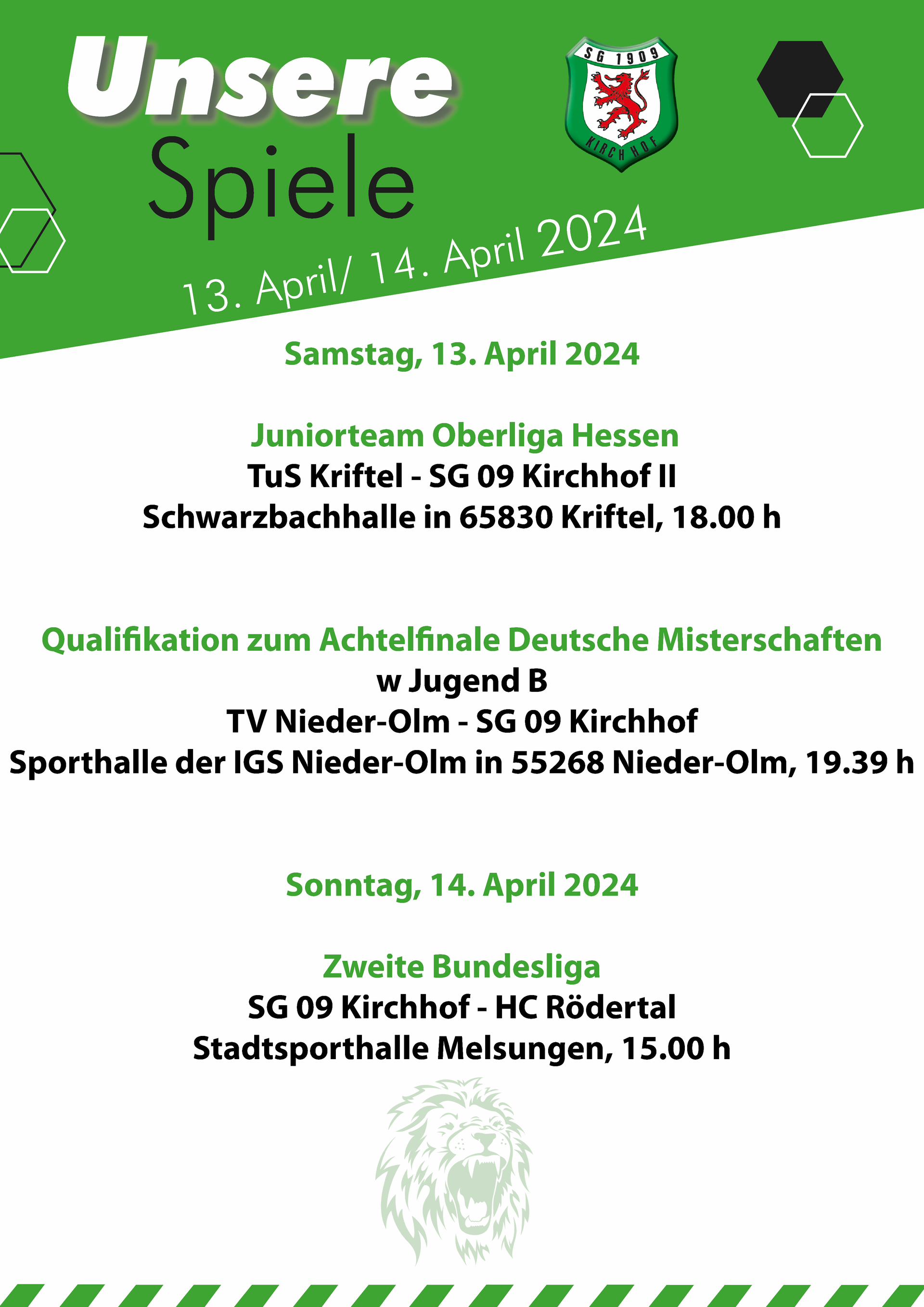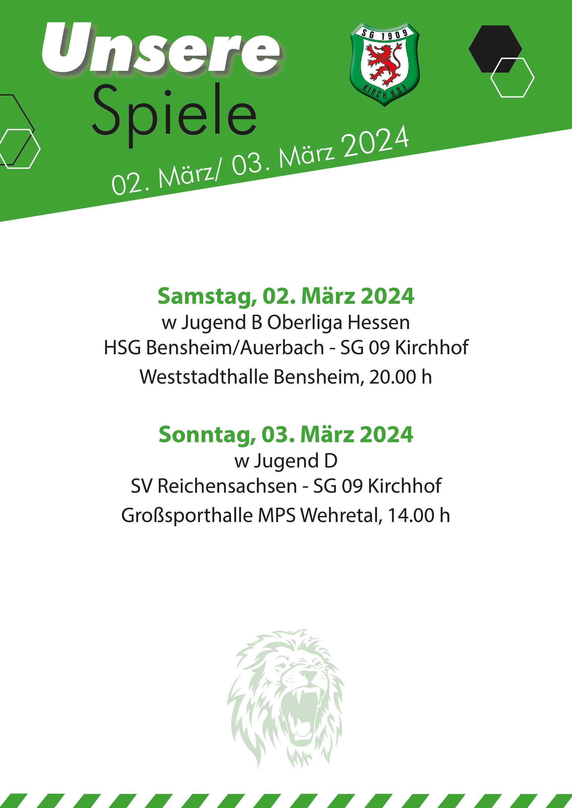 Wir wünschen euch einen schönen Handballabend und weiterhin ein gutes Zusammenspiel mit der SG 09 Kirchhof auf und neben dem Spielfeld.