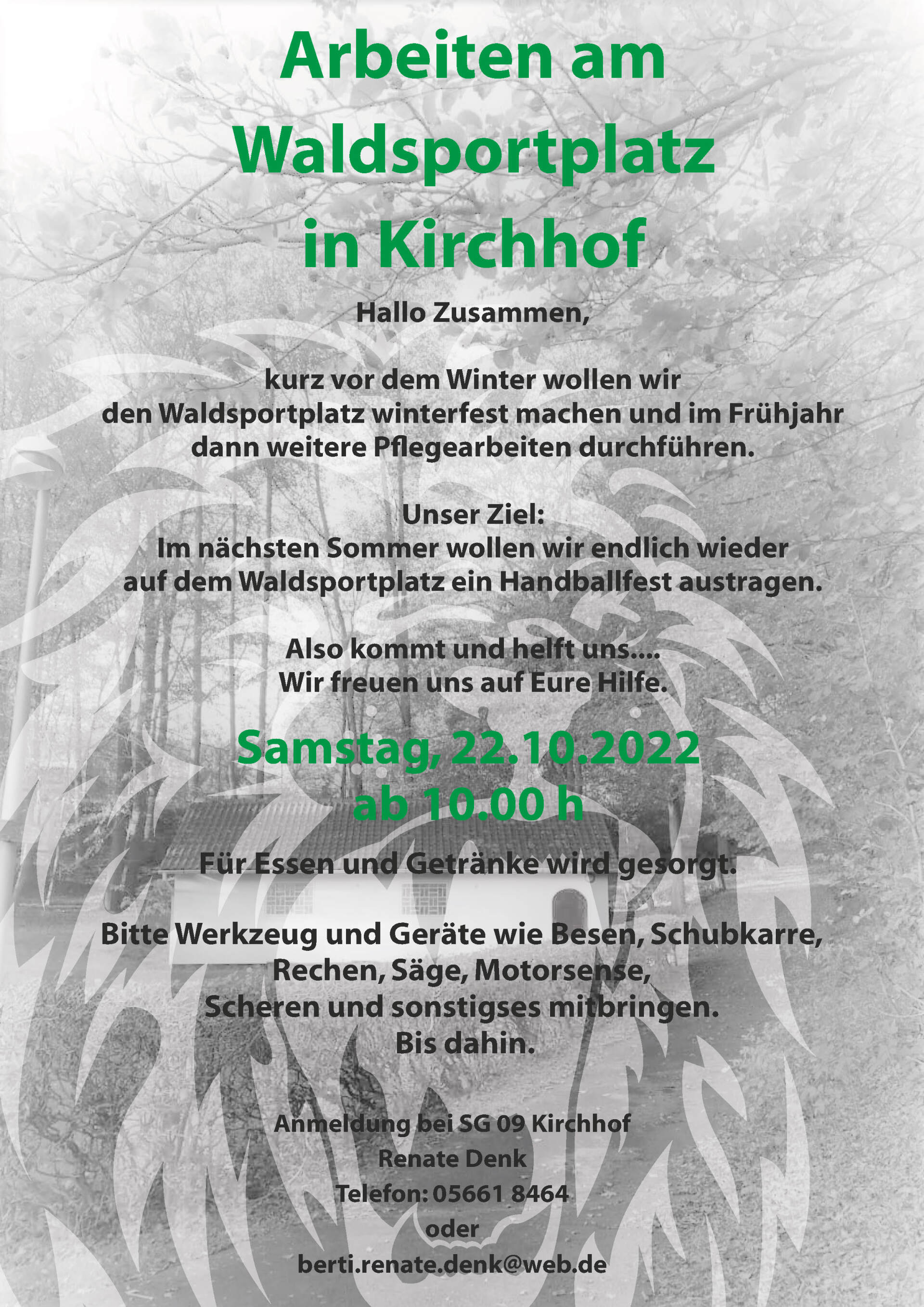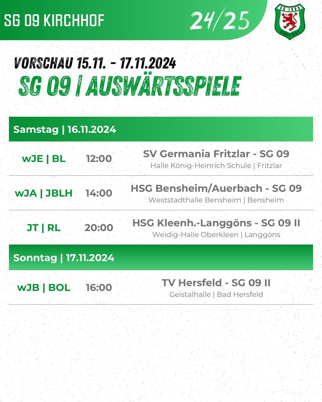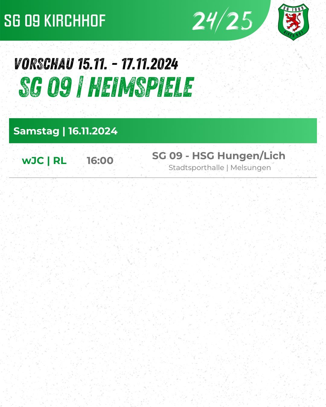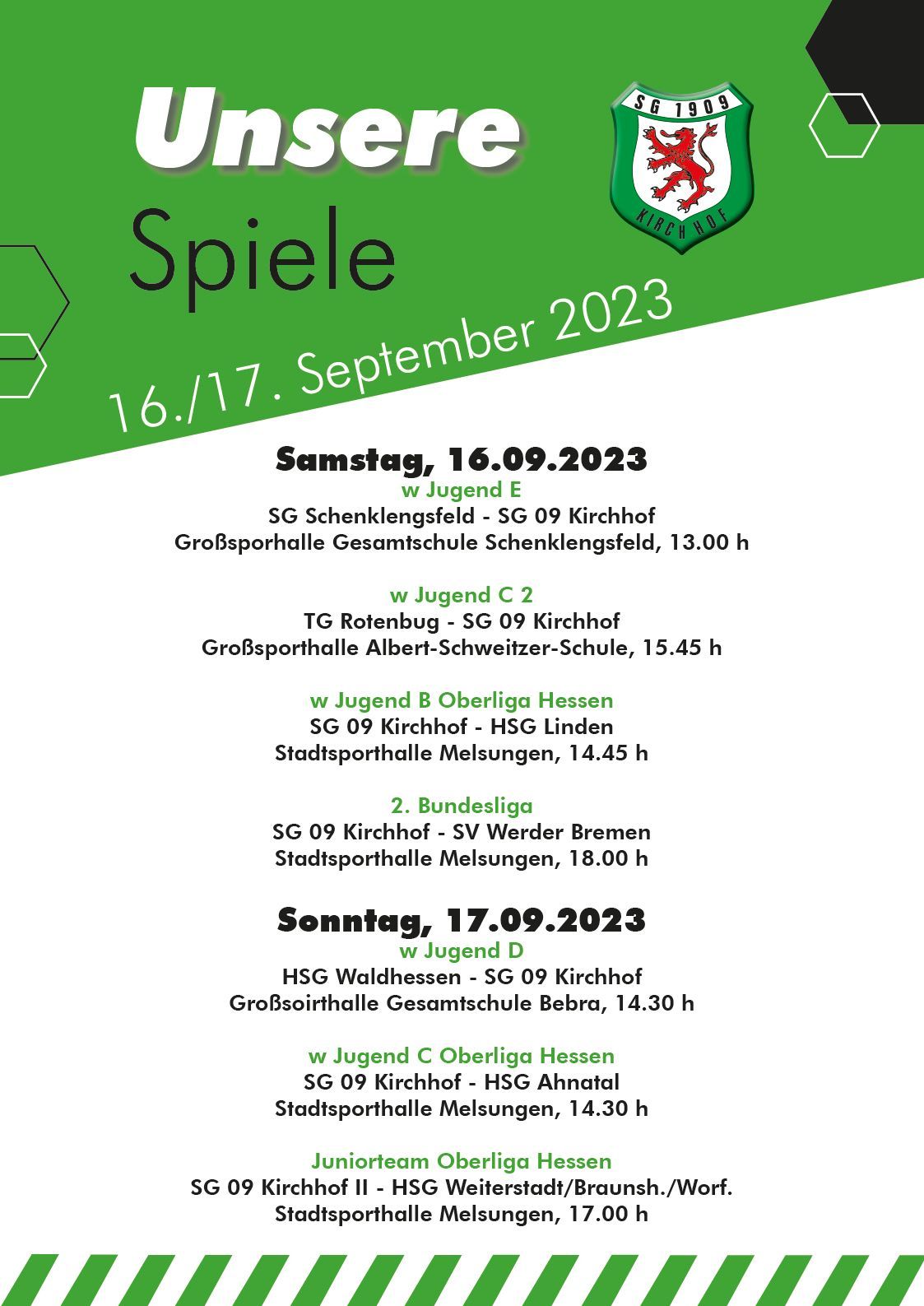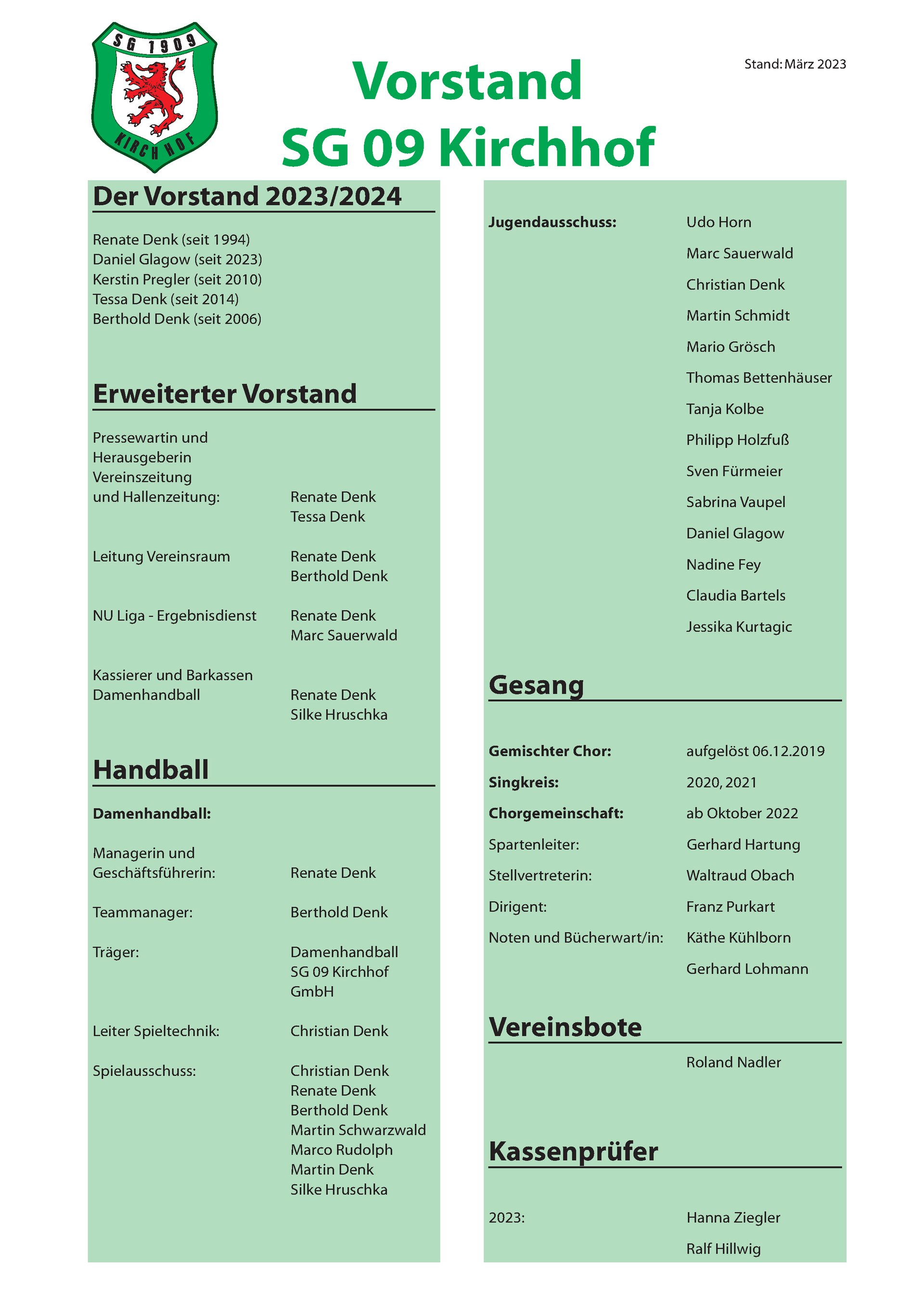 Wir wünschen euch einen schönen Handballabend und weiterhin ein gutes Zusammenspiel mit der SG 09 Kirchhof auf und neben dem Spielfeld.