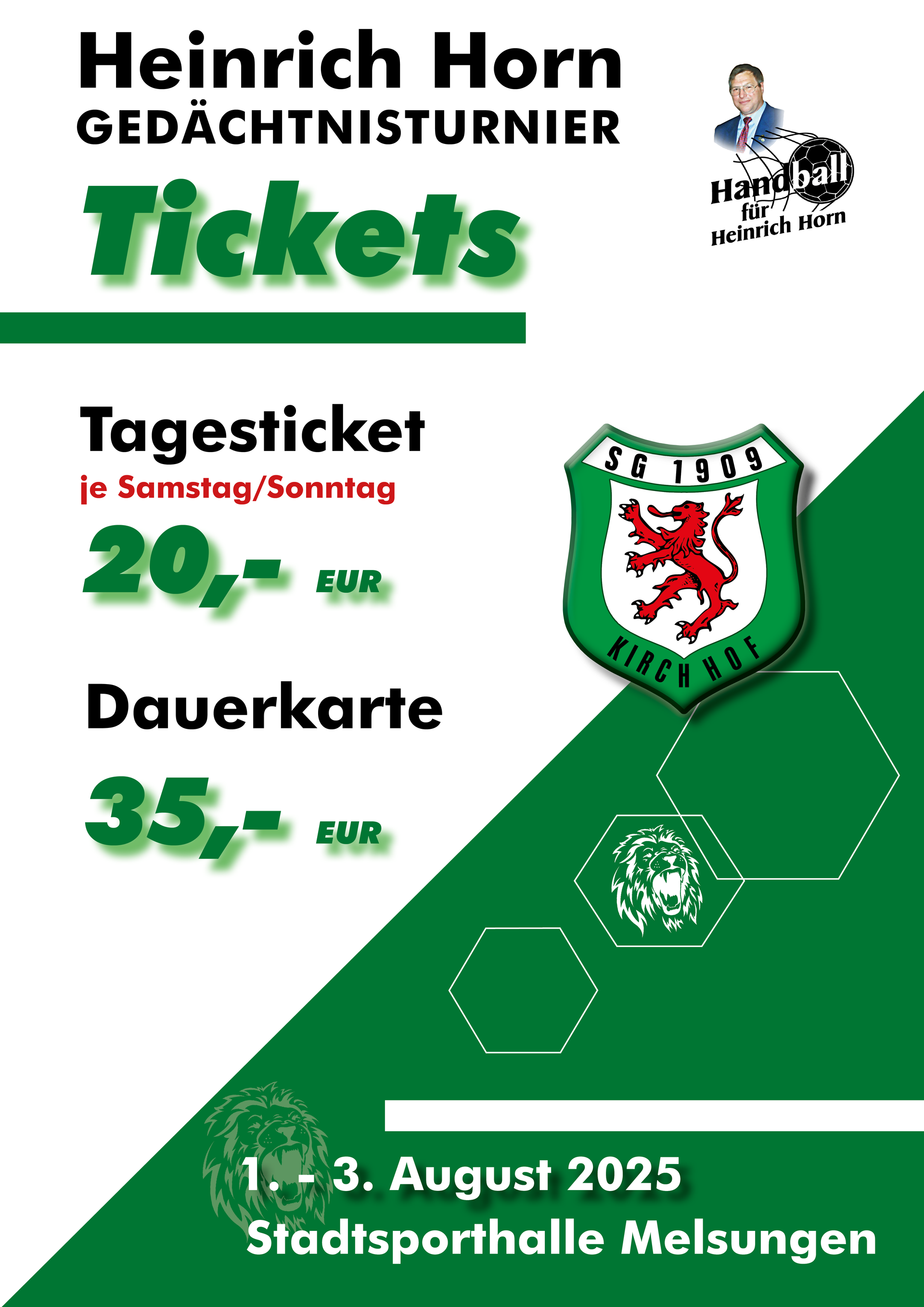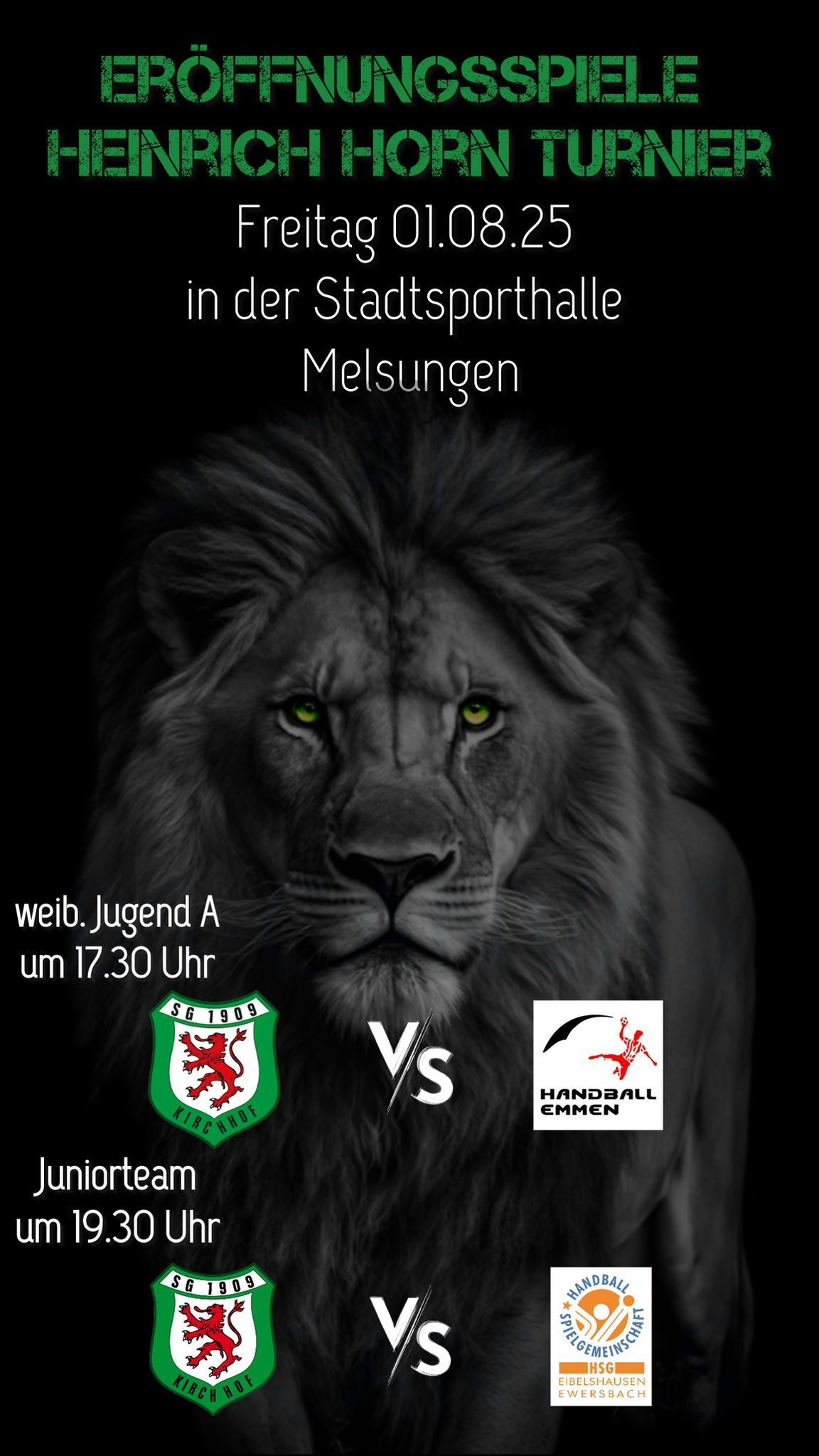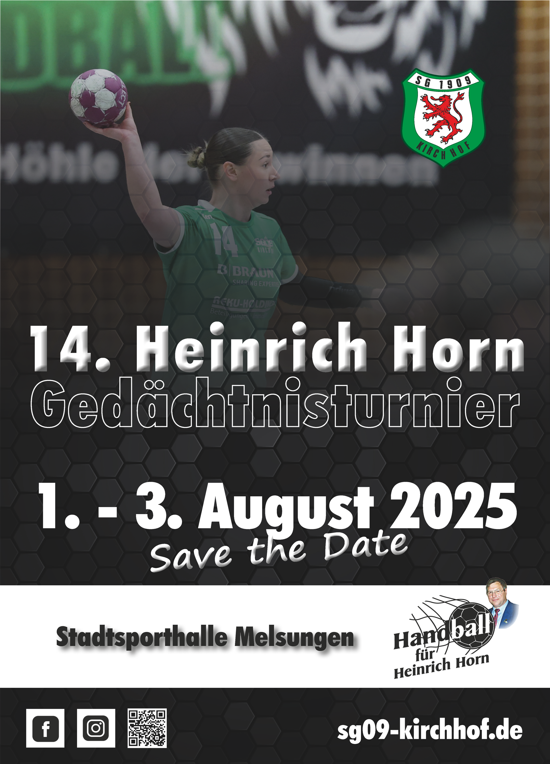 Willkommen beim Heinrich Horn Gedächtnisturnier! Wir freuen uns auf attraktiven Handball, spannende Begegnungen und einen Drittligisten, der auch bei uns für Highlights sorgen wird.