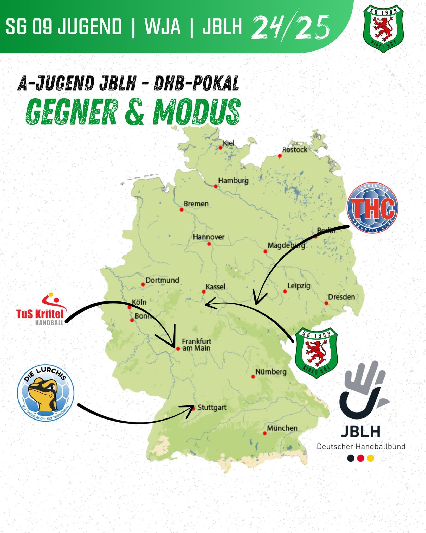 Jeweils die ersten beiden Mannschaften jeder Gruppe erreichen die Viertelfinals, auf die ein Final4-Turnier folgt. Die acht drittplatzierten Teams der Vorrunde bilden zwei Vierergruppen, deren Sieger in Hin- und Rückspiel um den DHB-Pokal der weiblichen A-Jugend streiten.