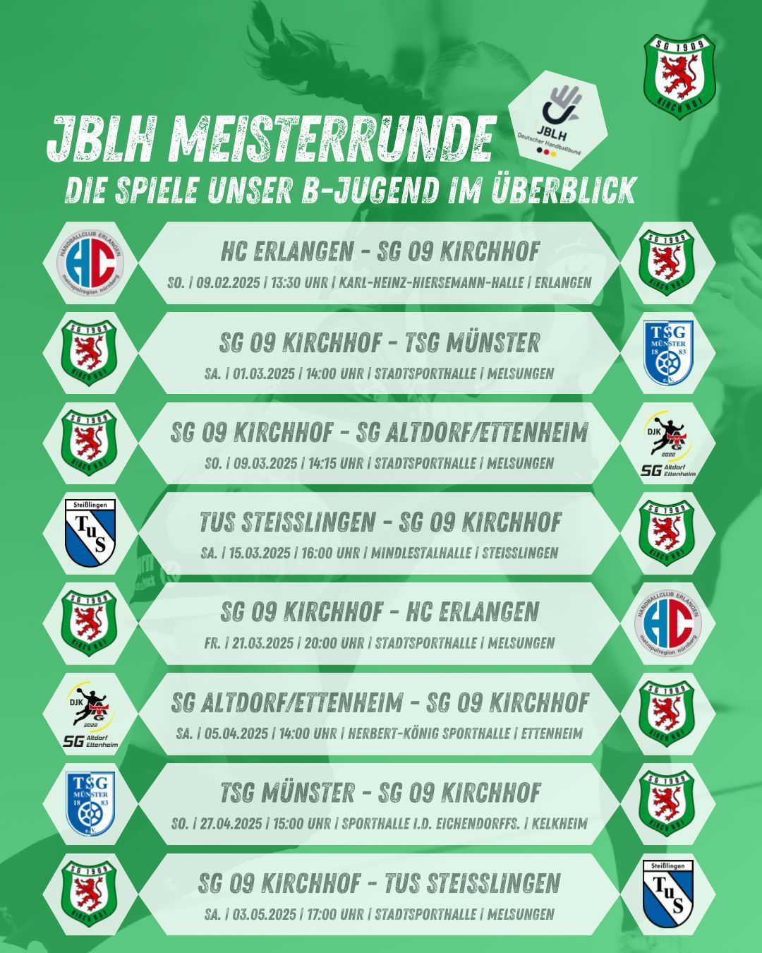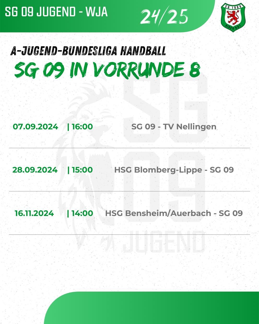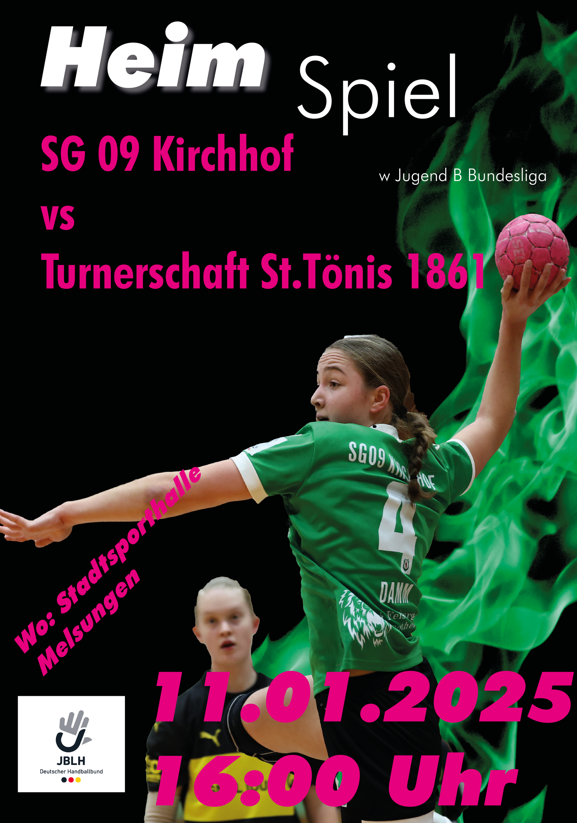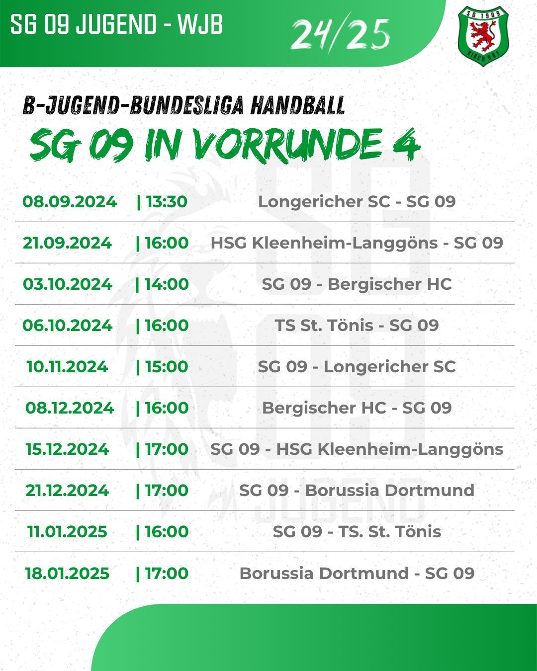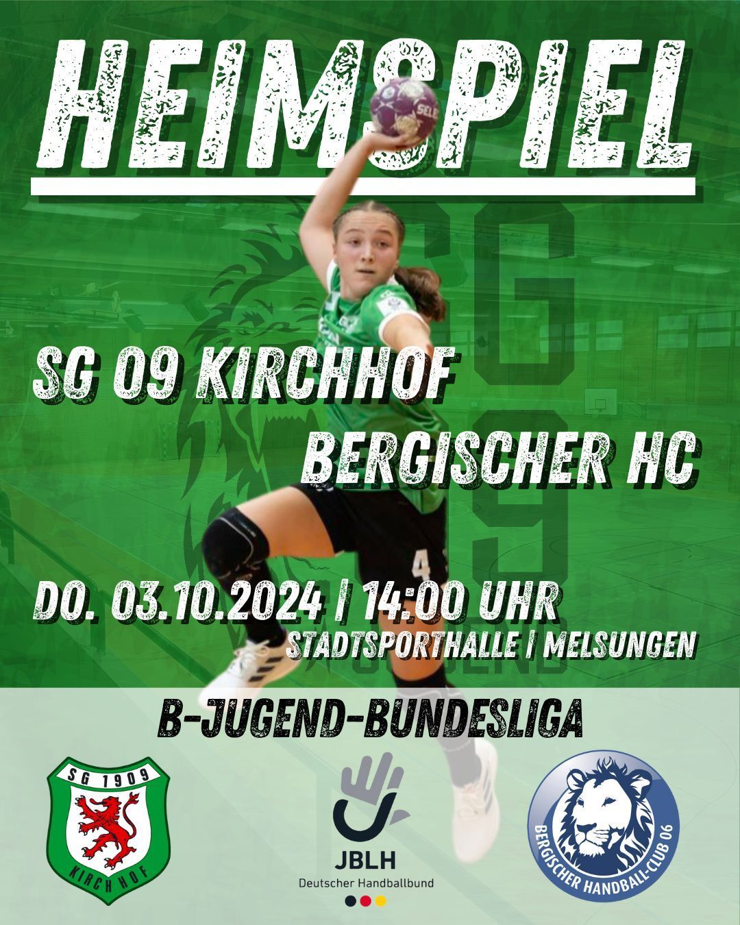 Auch für unsere B-Jugend (@wjb_sg09kirchhof ) beginnt am Wochenende das Abenteuer Jugend-Bundesliga Handball. Zum Auftakt steht dabei am Sonntag die Auswärtshürde beim Longericher SC (@longerichersc_wb ) in Köln auf dem Programm. Anpfiff ist um 13:30 Uhr in der Sporthalle der Carl-von-Ossietzky Gesamtschule.