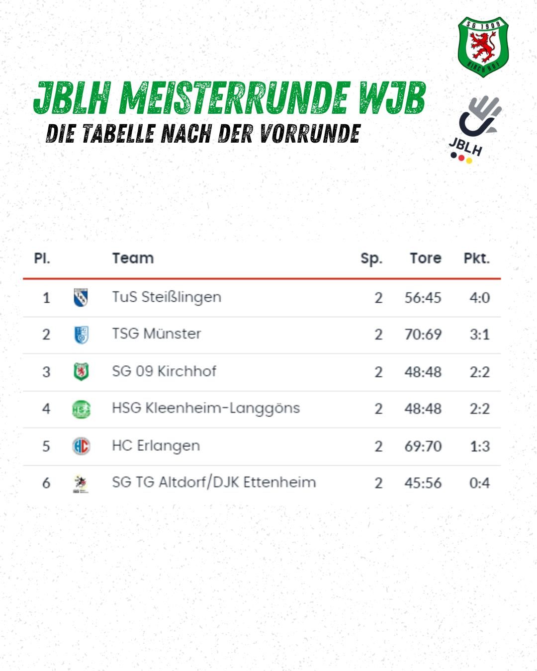SG 09 Kirchhof - TV Nellingen (Sa. 16 Uhr, Stadtsporthalle Melsungen). Bereits im April bot das Team von Trainer Denk den späteren Halbfinalistinnen im Achtelfinale der Deutschen B-Jugend-Meisterschaft einen großen Kampf und fügte ihm in eigener Halle die erste Saisonniederlage (26:24) zu, ehe Nellingen im Rückspiel (32:19) den Spieß umdrehte. An die Leistung aus dem ersten Vergleich gilt es im ersten von drei Vorrundenspielen anzuknüpfen. Dafür kann Christian Denk in der älteren Jahrgangsstufe wieder auf sein eingespieltes Team um Kapitänin Juliana Wagner bauen, das in der Qualifikation gegen starke Konkurrenz den Bundesliga-Einzug perfekt machte.