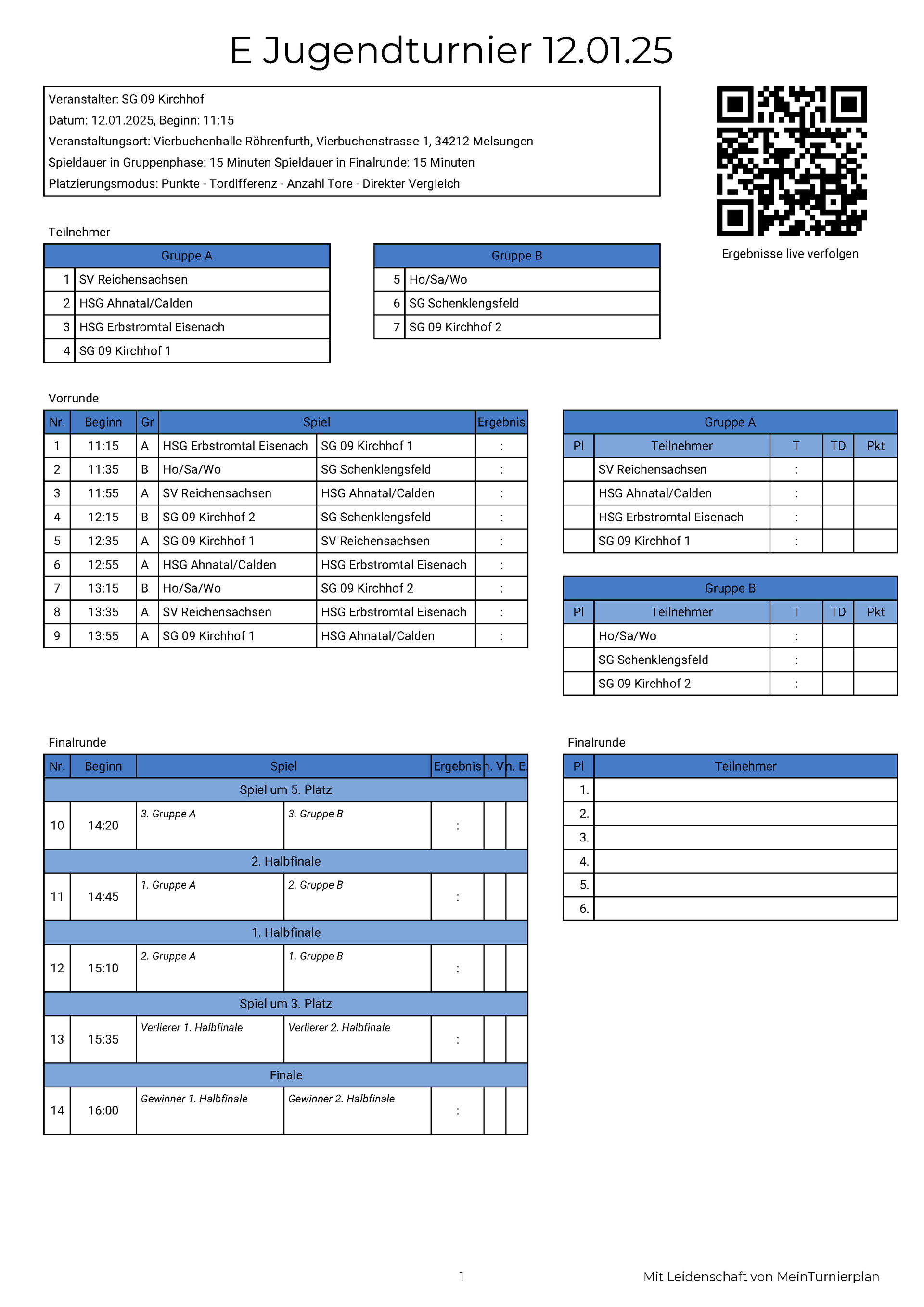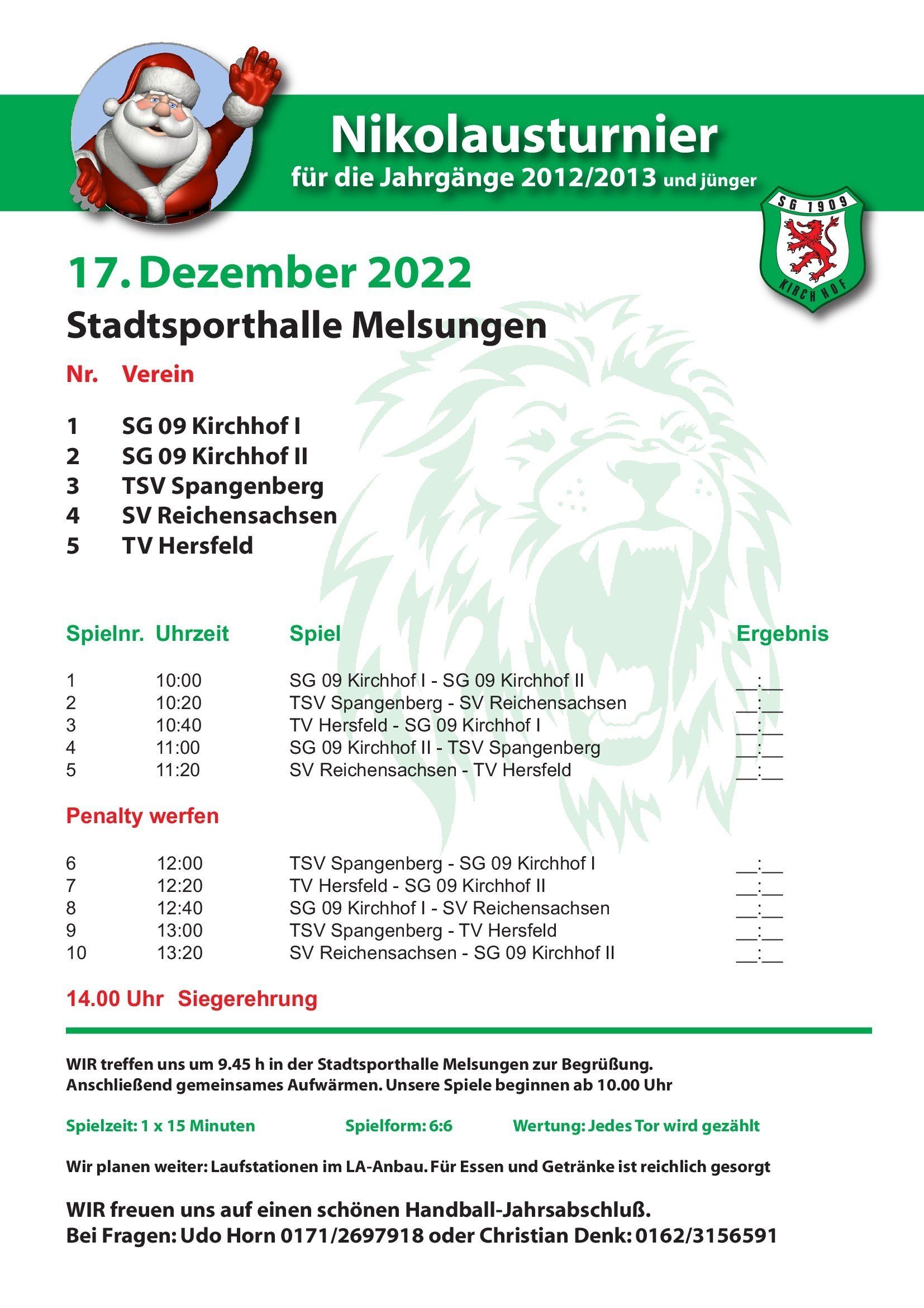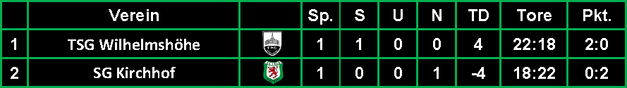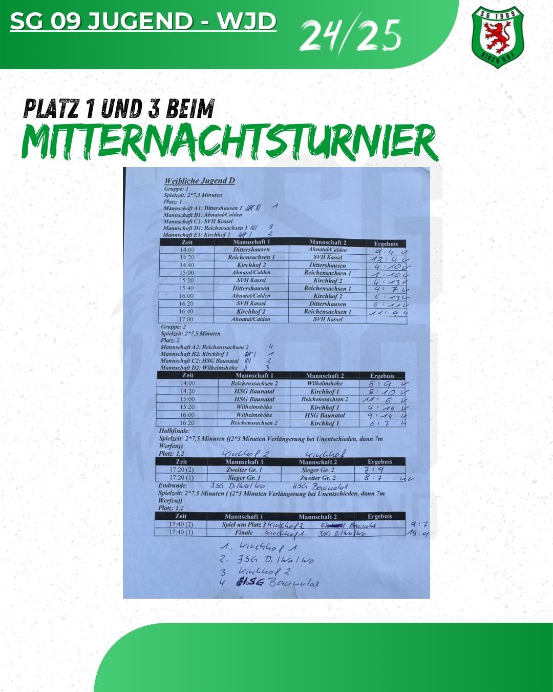 Im Finale trumpfte die SG 09 Kirchhof gegen die TSG Wilhelmshöhe mit 10:6 auf, schon in der Vorrunde kreuzten sich die Wege, da gewann Grün-Weiß noch 9:5. Im letzten Spiel der Vorrunde wurde die Siegesserie gegen die HSG Baunatal mit 9:3 fortgesetzt.