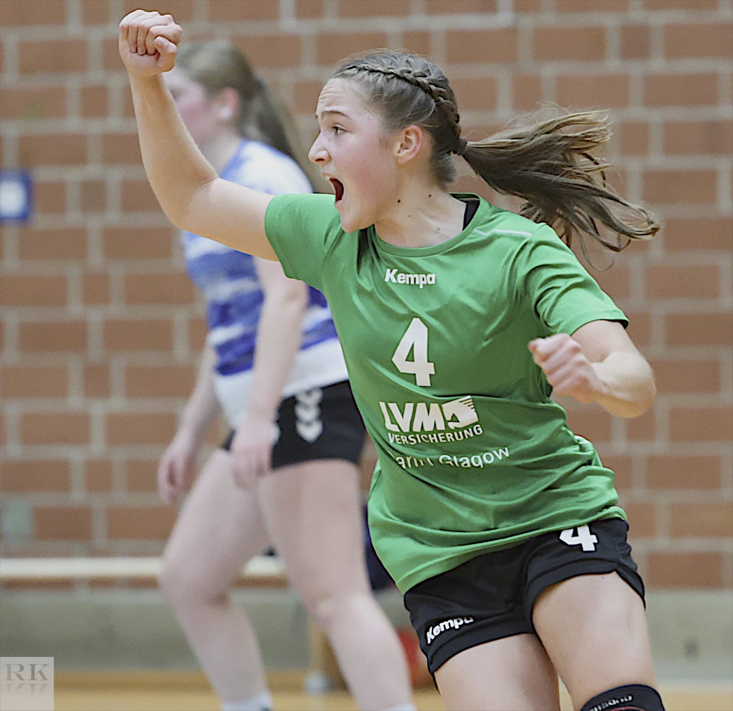und Ehrgeiz zeichnen Mila Rothhämel stetig aus, egal in welcher Situation. Ob nun in der Leidenszeit mit Krücken, in der Reha oder nun wieder auf dem Spielfeld. Im Löwen-Rudel, des Jahrganges 2007, gibt es seit 2018 aber auch bei der Sportgemeinschaft Zwillinge. Die Engels-Mädels. Im Tor und auf der Linksaußenposition. Sie stehen für Zuverlässigkeit und Treue. Gut, dass die Eltern die langen Anfahrten zum Training meistern. Vier- bis fünfmal wöchentlich. Dazu gehört auch Liv Mara Geldmacher. Sie kam 2023 aus Kassel. Eine weitere Rückraumspielerin, die die Reifeprüfung zum Ende der Saison bestehen wird und im Frauenbereich gefragt ist. Ihre scharfen Torwürfe aus der zweiten Reihe helfen derzeit schon im Juniorteam.