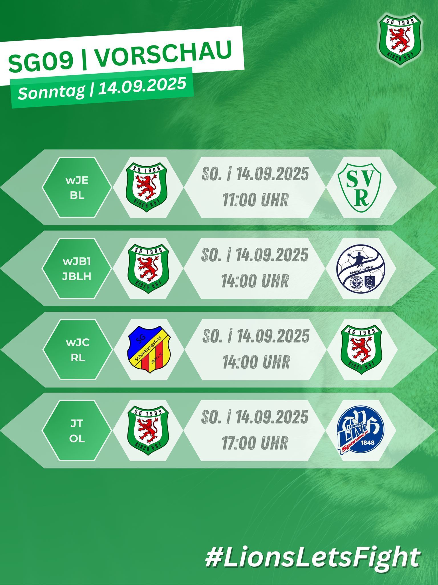 Kommt vorbei, unterstützt die Mädels und zeigt, dass die SG-09-Familie zusammensteht! 💚🤍